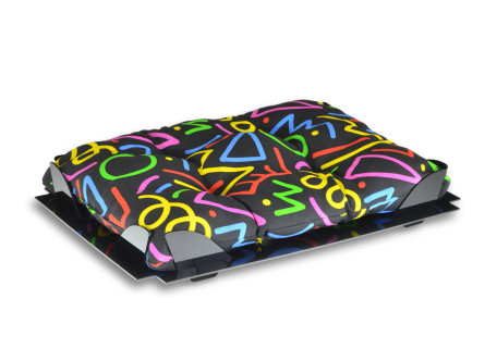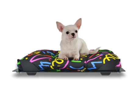 Una cuccia dal design minimale va oltre l'essere un semplice recinto. In questo caso si presenta un sistema anti-scivolamento del cuscino che consente di incastrare i 4 angoli, bloccandolo sempre all’interno del telaio portante. Un metodo essenziale e funzionale, che permette di mantenere la cuccia in ordine evitando di raccogliere impurità dal pavimento.